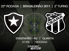 Nesta quarta-feira, 07/09, o Vozão encara o Botafogo às 16 horas, no estádio Engenhão, em partida válida pela 22ª rodada do Campeonato Brasileiro Série A. O Ceará, com 26 pontos, ocupa a 13ª colocação na tabela. Já o Botafogo tem 37 pontos e está na quarta colocação.
