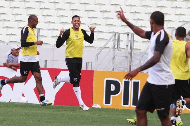 Amanhã, o Ceará Sporting Club vai encarar a equipe do Atlético/GO, em jogo válido pela 14ª rodada do Campeonato Brasileiro Série B 2013, mas na tarde de hoje, o grupo do Vovô treinou na Arena Castelão e o clima entre os jogadores foi de muita alegria.