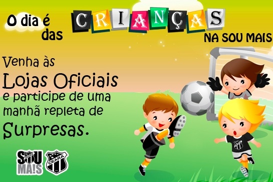 No próximo sábado, 05/10, a partir das 9 horas, venha às Lojas Oficiais Sou Mais Ceará da Barão de Studart, Oliveira Paiva, Bezerra de Menezes e Centro da cidade e participe de uma manhã repleta de brincadeiras, descontração e diversão.
