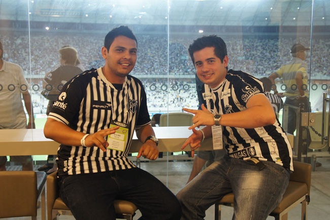 Mais uma vez, dois torcedores alvinegros fizeram a festa no Camarote exclusivo do Ceará Sporting Club. É a promoção Eu "VÔ" de Camarote que levou o Torcedor Oficial, Paulo Victor Almeida, e seu acompanhante, Daniel Cayres, ao local mais VIP da Arena Castelão para assistir à dramática vitória do Vozão, por 2 x 1, diante do Avaí.