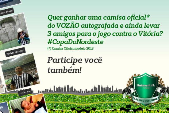 Amanhã (quinta-feira, 27/02), o Vozão vai entrar em campo em mais uma partida decisiva na Copa do Nordeste 2014 e sua torcida é fundamental! Pensando nisso, a Unimed Fortaleza vai te ajudar a completar sua coleção de camisas* do VOZÃO e ainda garantir a sua entrada e de mais três amigos.