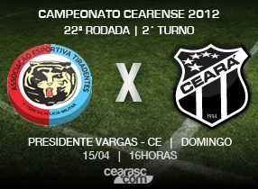 O confronto entre Tiradentes x Ceará vai ser realizado às 16 horas. Por ser visitante, o torcedor oficial do Vozão NÃO vai ter acesso gratuito ao estádio Presidente Vargas (PV) e deve efetuar a compra do seu ingresso nos pontos de venda.